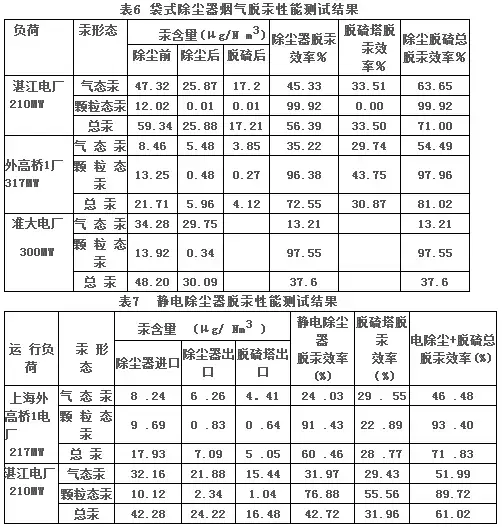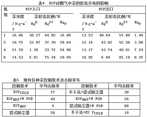5.1、各类除尘器脱汞的情况见表4、5: